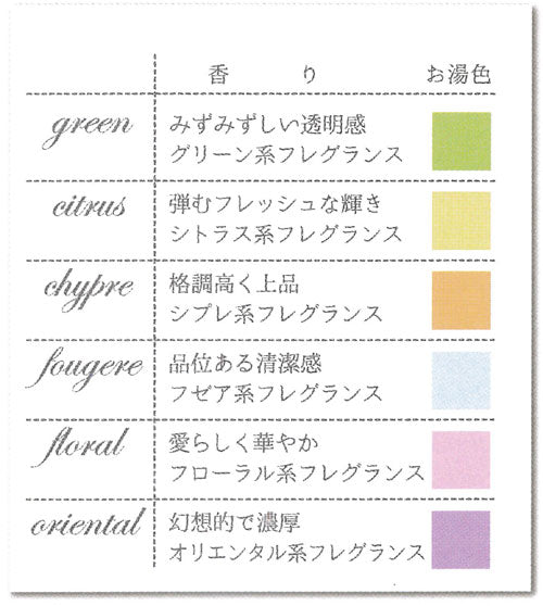 グリーン・シトラス・シプレ・フゼア・フローラル・オリエンタルの6種