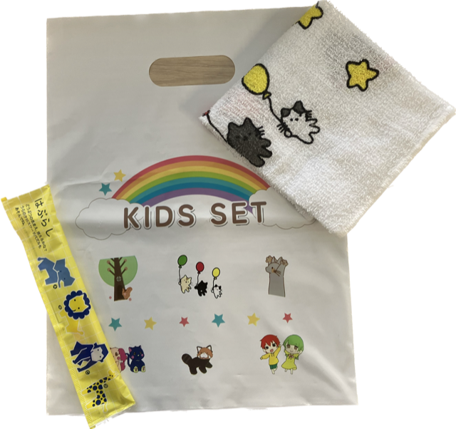 手提げPEバッグと子供用タオルは、弊社完全オリジナル!